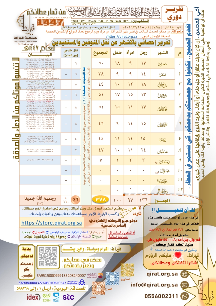 الجمعية تصدر تقريرها الإحصائي عن شهر (شعبان) 1447هــ