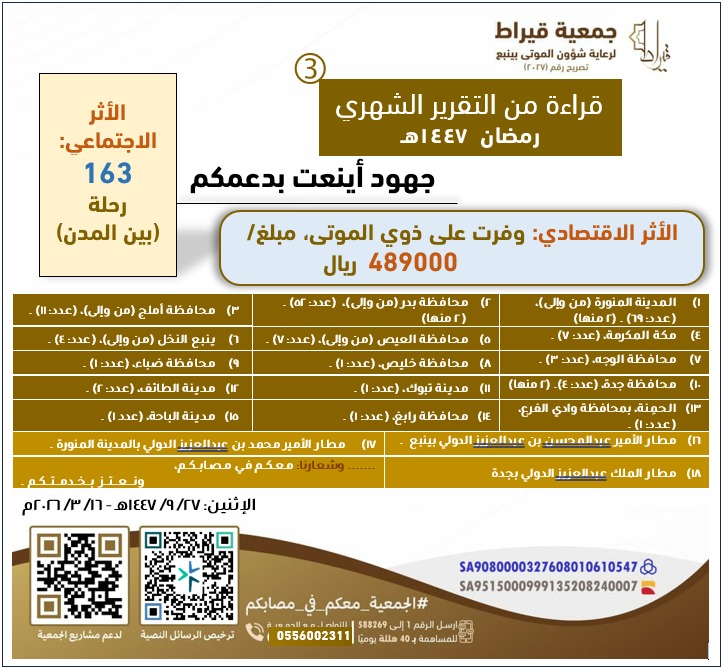 دعمكم في محله، بفضل الله تعالى ثم بدعمكم المستمر، تمكنت جمعية قيراط من تقديم خدماتها لـــ 24 جنسية، وقدمت لهم خدمات النقل داخل ينبع وخارجها بين المدن، وقدمت لهم الدعم النفسي بالمواساة وإكمال وتسهيل الإجراءات ،